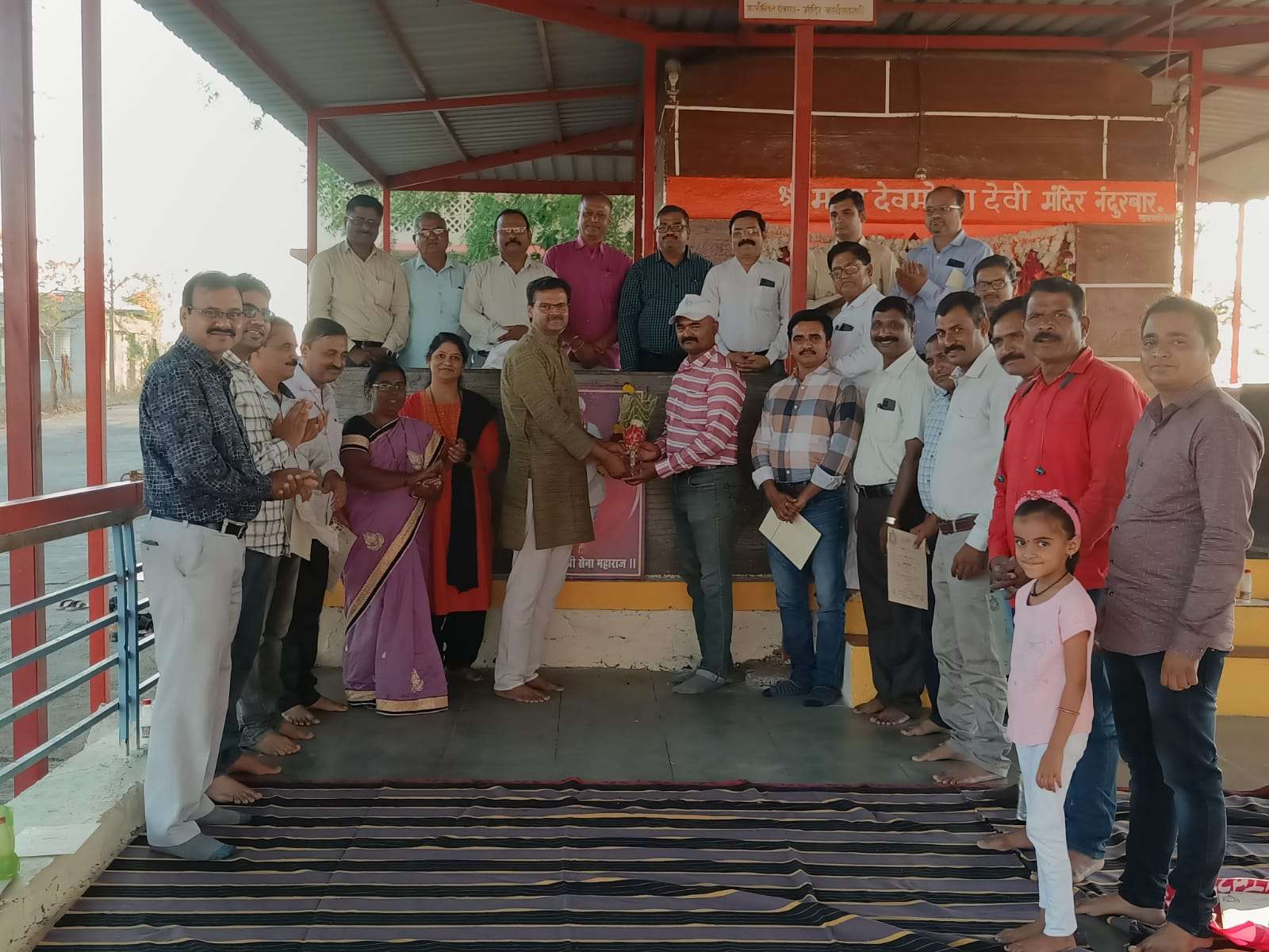 देव मोगरा माता मंदिराच्या परिसरात नंदुरबार जिल्हा नाभिक समाज हितवर्धक व कर्मचारी संस्थेची त्रैमासिक मीटिंग घेण्यात आली. सभेच्या अध्यक्षस्थानी संस्थेचे अध्यक्ष पंकज भदाणे होते. राष्ट्रसंत संत सेना महाराज प्रतिमा पूजन करून सभेची सुरुवात झाली. सभेमध्ये विविध विषयांवर चारचा करण्यात आली. राष्ट्रसंत संत सेना महाराज निधी लिमिटेड या आपल्या हक्काच्या व्यासपीठाचा वापर सर्व समाज बांधवांनी करावयाचा आहे व आपला आर्थिक विकास करावा, असे आवाहन मीनाक्षी भदाणे यांनी केले.